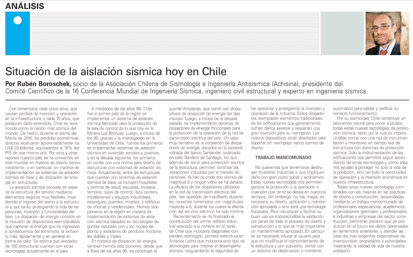 Retamales, P. Bonelli, R. Boroschek y J. Carvallo, “APLICACIÓN DE SISTEMAS DE AISLACIÓN SÍSMICA EN EDIFICACIONES DE MEDIANA ALTURA”. XI Congreso Chileno de Sismología e Ingeniería Sísmica, 18 al 20 Marzo 2015, Santiago, Chile artículo 184.